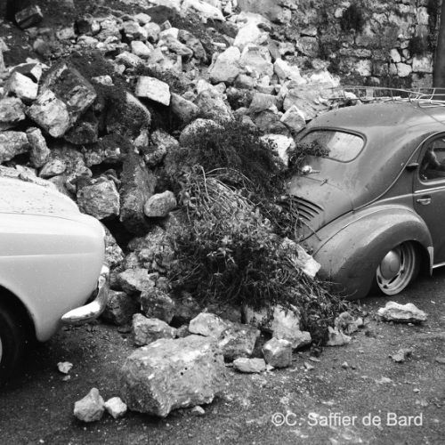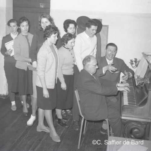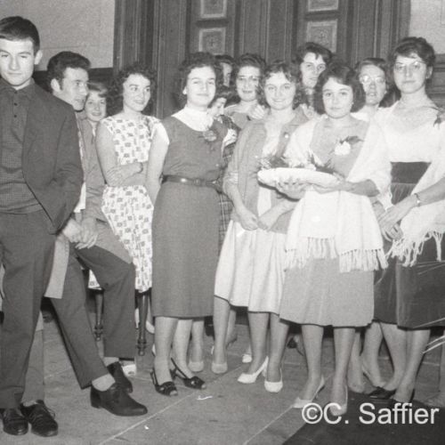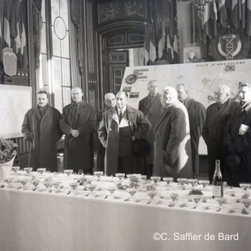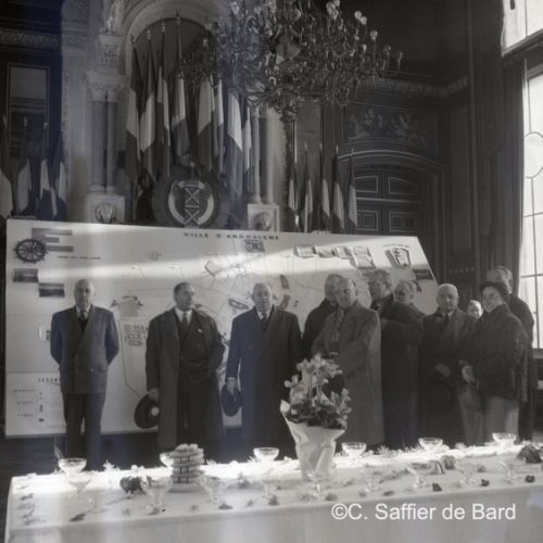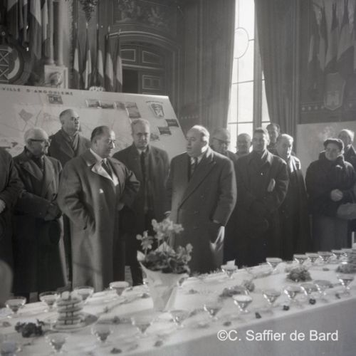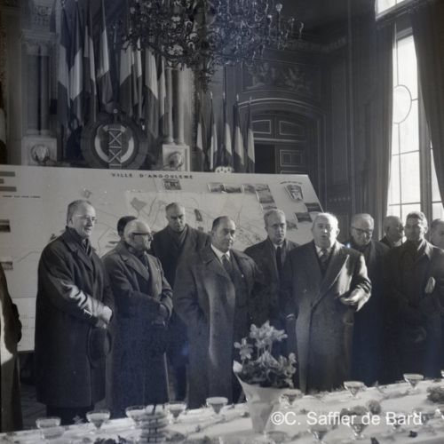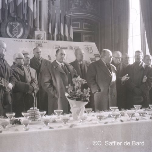 3ème album de janvier 1960 : étudiants au bal normalien, équipe de volleyball du SCA, réunion du Club Taurin au café Le Wagram place du Champ de Mars à Angoulême, camion magasin, éboulement rue de Lavalette, le carrefour de Lille, le marché covert, place Francis Louvel, cross militaire, le SCA reçoit l'équipe de rugby du Stade Toulousain, Paulette Merval et Marcel Merkes prennent la pose au Studio Christian-Claude pour une séri de photos faite à la Chambre photo 6,5x11 et qui servira à la pochette de disque "Rève de valse", professeur avec ses élèves à l'école de musique, vin d'honneur à la mairie d'Angoulême, photo couleur de l'Estafette de la maison Sabas.