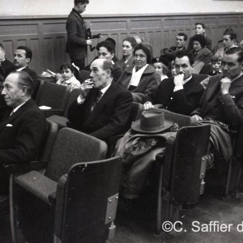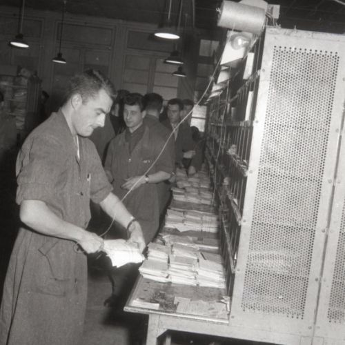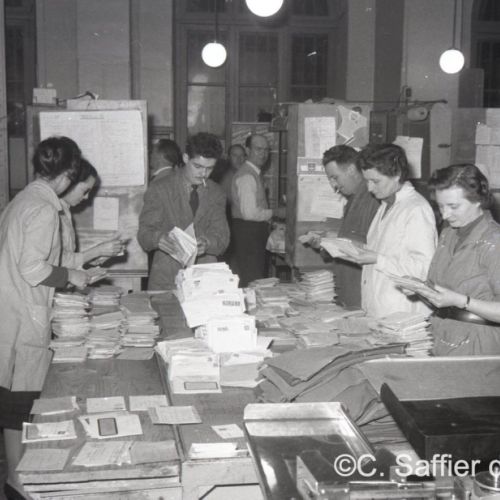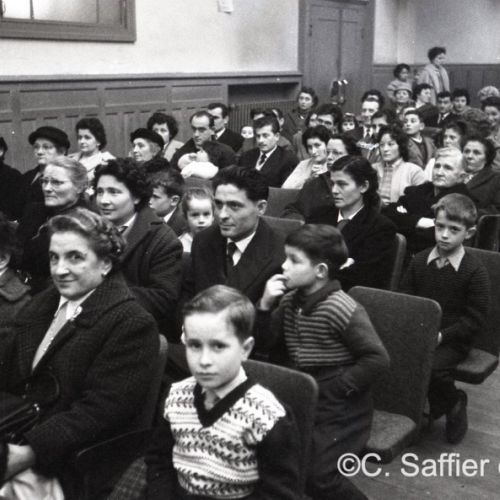 2ème album de janvier 1960 : beaucoup de courrier en ce début d'année au tri postal de la gare à Angoulême les tous premiers jours de l'année, le SCA reçoit l'équipe de rugby du Stade, Montois, voeux à Leclerc Chauvin, congrès des établissements Lacroix pécialisée dans la fabrication du papier à cigarettes à Angoulême, voeux à Leclerc Chauvin, fabrication du papier au Moulin du Verger aux Eaux Claires à Puymoyen, il a neigé à Angoulême pour le bonheur des grands et des petits, l'équipe de Volleyball du SCA rencontre les américains du camp de la Braconne, l 'équipe de Volleyball du SCA rencontre les américain "USA" du camp de la Braconne, reportage aux établissements Broussaud Le Nil à Cothiers, le Carrefour de Lille, réunion du Club Taurin au café Le Wagram place du Champ de Mars à Angoulême,arbre de Noël à l'usine du Nil, le SCA reçoit l'équipe de rugby du Stade Montois, un professeur de l'école de musique d'Angoulême avec ses élèves, vin d'honneur à la Mairie d'Angoulême, les voeux au Centre Départemental de l'Enfance de Leclerc Chauvin, congrès des Etablissements Lacroix, vues d'Angoulême sous la neige, l'équipe de Volleyball du SCA rencontre les américain "USA" du camp de la Braconne, reportage dans les ateliers des établissements Broussaud "Le Nil" à Cothiers.