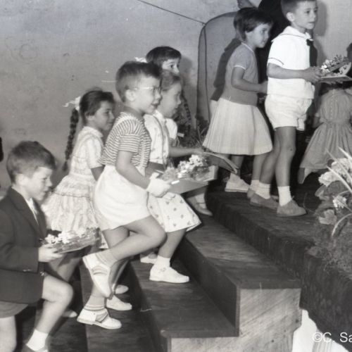 Inauguration et photos de stands de la Foire d'Exposition d'Angoulême place du Champ de Mars, construction de l'école ménagère de La Couronne, inauguration de l'Hôtel d'Orléans, Félix Gaillard en famille, fête costumée à l'école Alfred de Vigny, pétanque boulevard Denfert Rochereau, le bloc opératoire de la clinique Ambroise Paré, fête des écoles au Jardin Vert, salon de coiffure Mathieu, côté homme, rue de Périgueux, festival folklorique au Jardin Vert, Kermesse de l'Enfant Jésus, distribution des prix de fin d'année à l'école Saint-Paul, photos en couleur de l'Estafette Renault des établissements Sabas, concours de modèles réduits à l'aérodrome de BelAir.