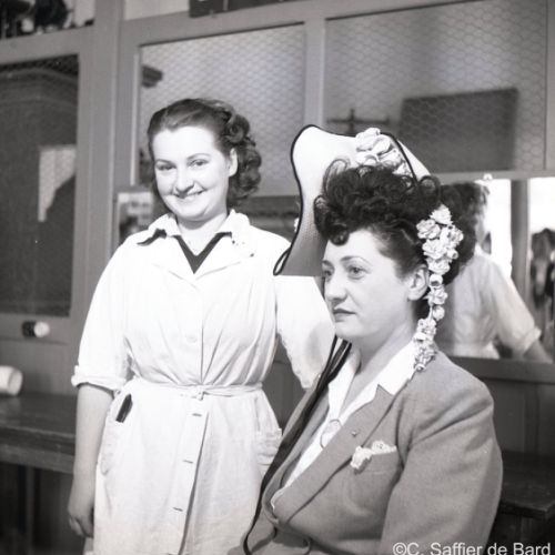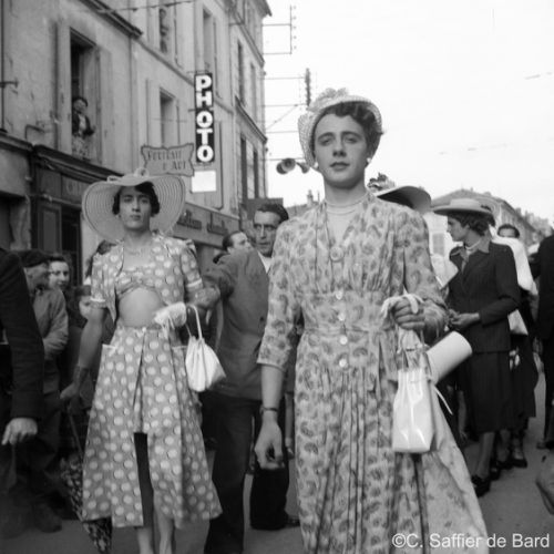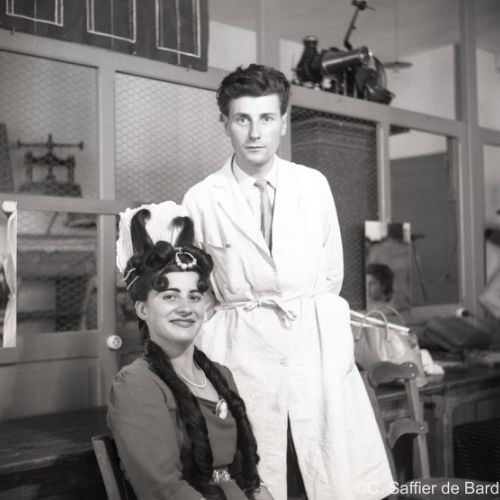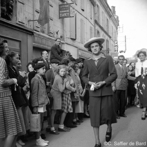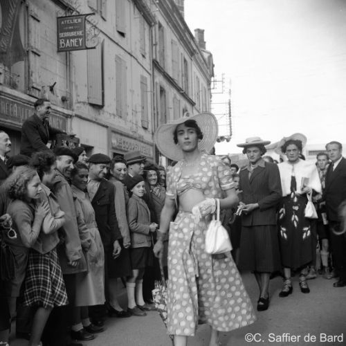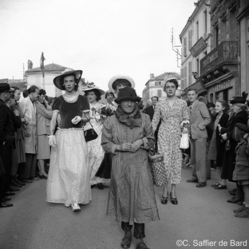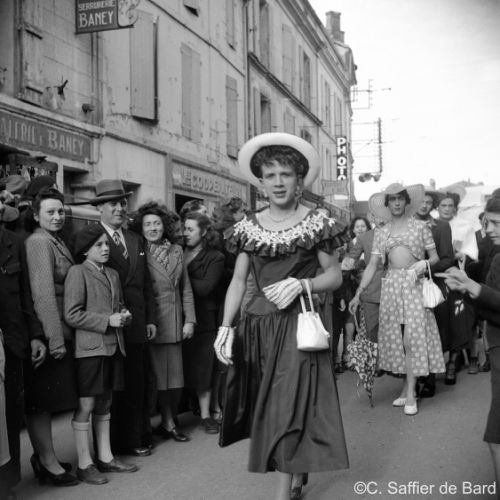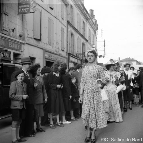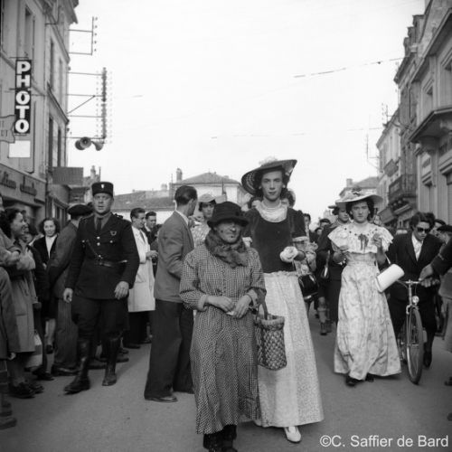 La chapelle d'Obezine, défilé de travestis rue de Périgueux (ici à La Bussate) le jour du Corso Fleuri, Maurice Trintignant remporte la course du Circuit des Remparts sur Gordini T15, éxamen pratique du Brevet de coiffure à la Chambre des Métiers d'Angoulême.