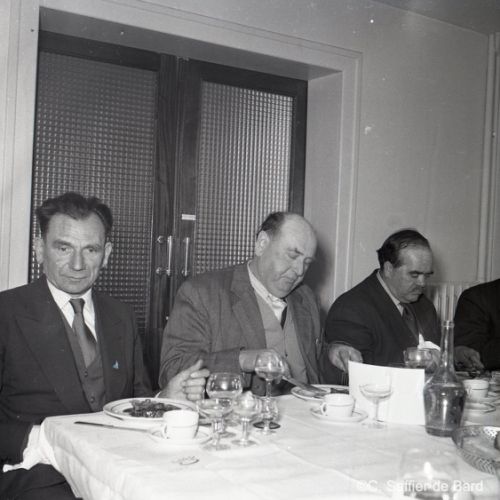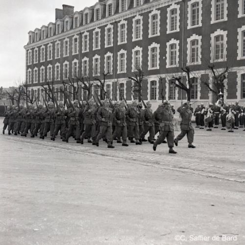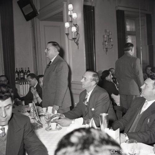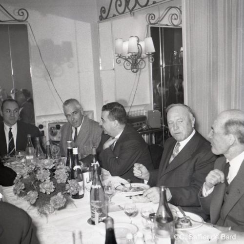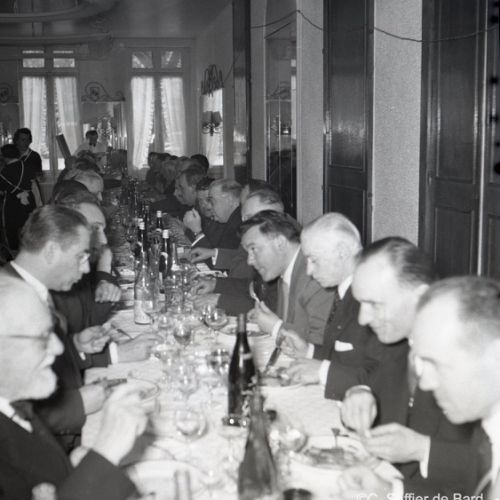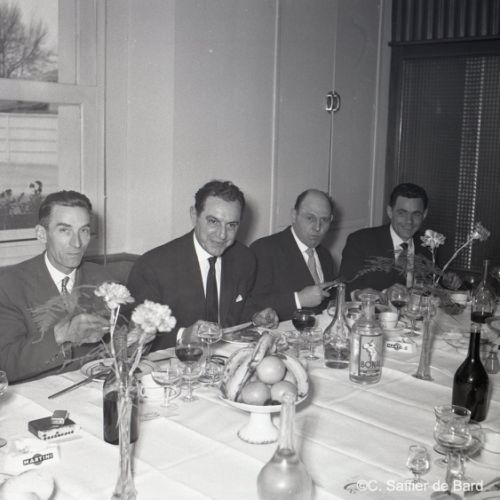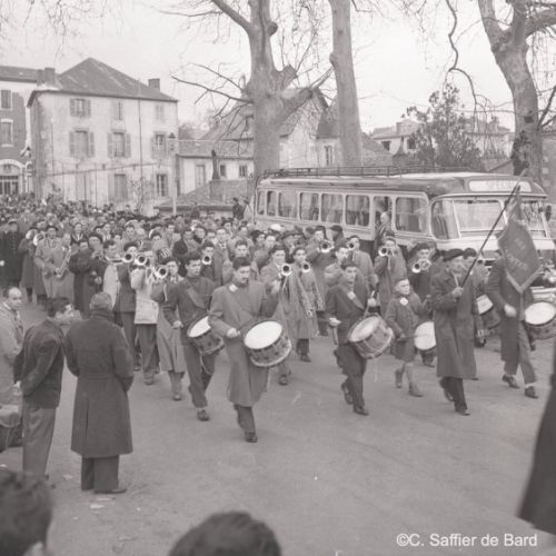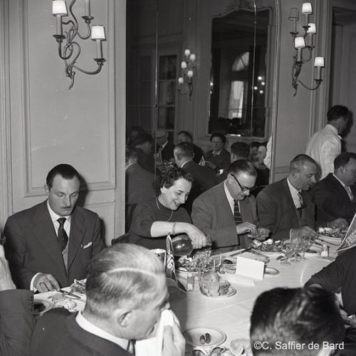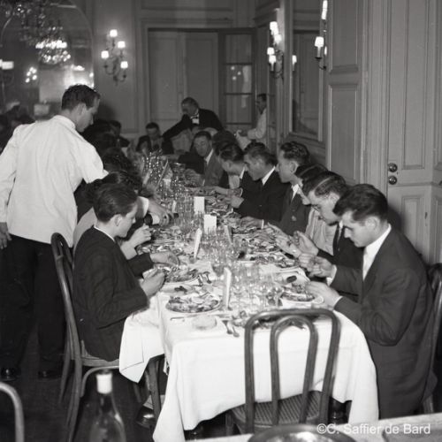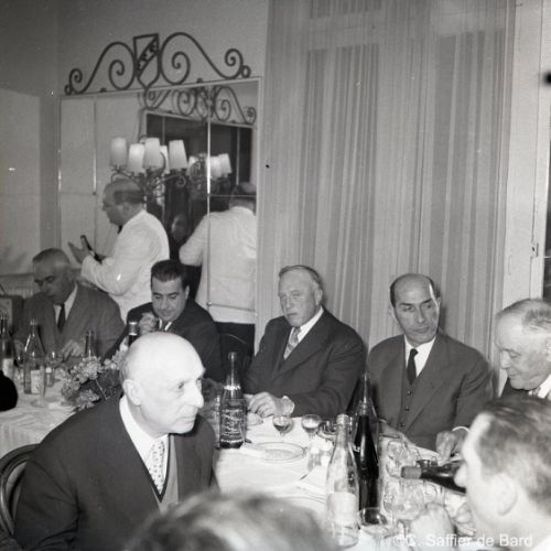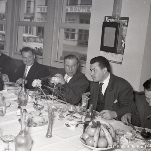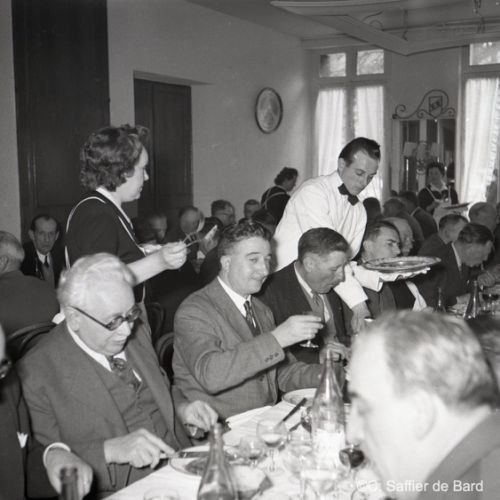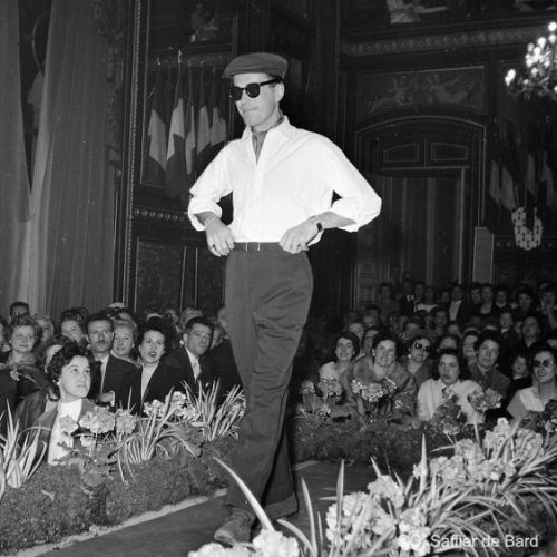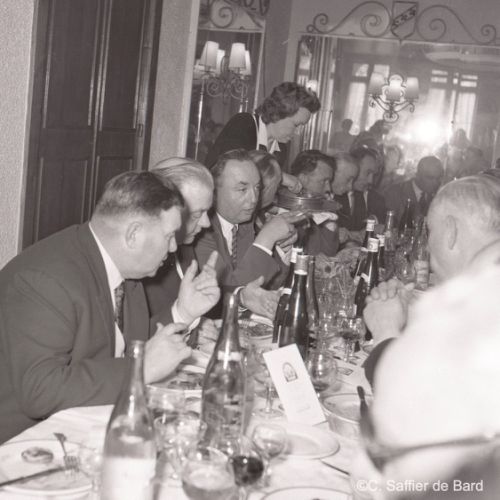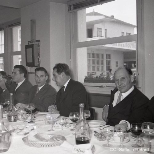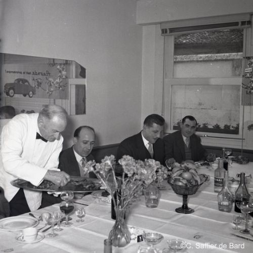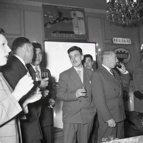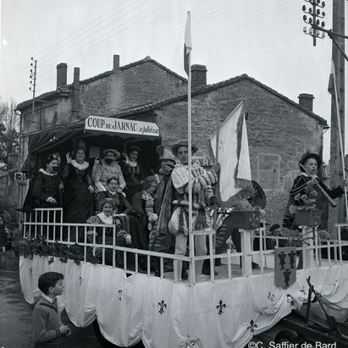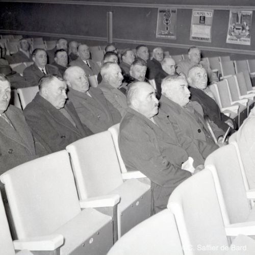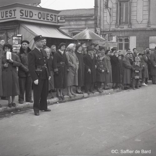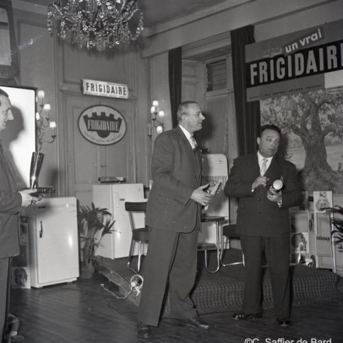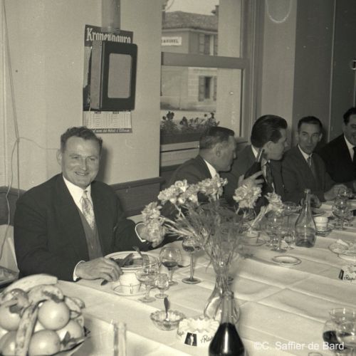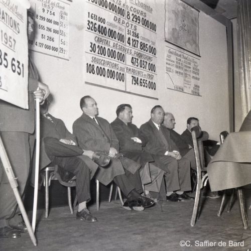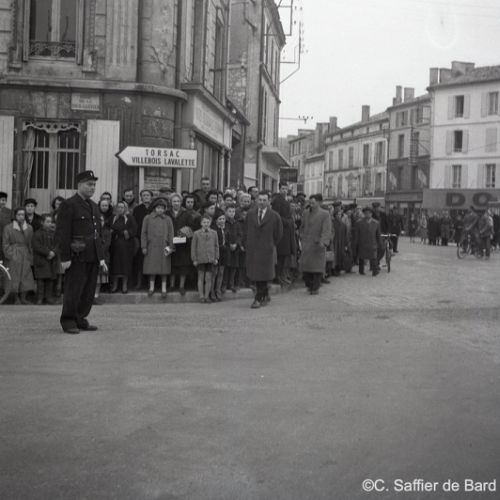 2ème album de mars 1958 : présentation de coiffures et présentation de mode "Hommes" dans le grand salon de l'Hôtel de Ville d'Angoulême, présentation d'un réfrigérateur Frigidaire aux au magasin d'électro-ménager Sabas, défilé de mode Arlène Couture à l'Hôtel de France, cavalcade au Gond Pontouvre, prise d'armes au Quartier Bossu boulevard Liédot à Angoulême, Félix Gaillard à Confolens, voyage à Lourdes des élus d'Angoulême, banquet au Crédit Agricole, banquet Simca au restaurant "Gasté" rue de Bordeaux à Angoulême, la compagine Jourdain, présentation de la gamme et banquet Frigidaire, Alain Bombard est à Angoulême.
