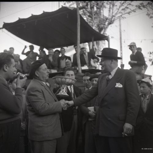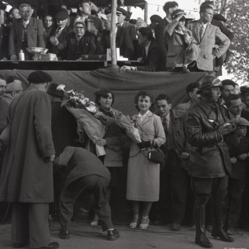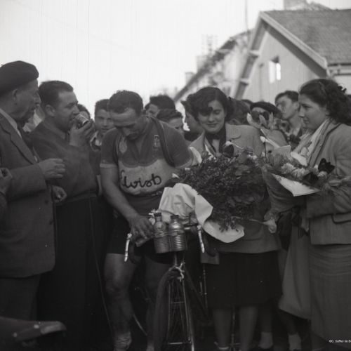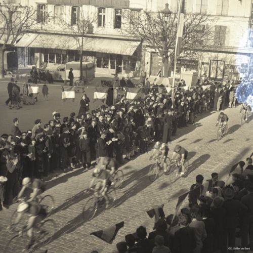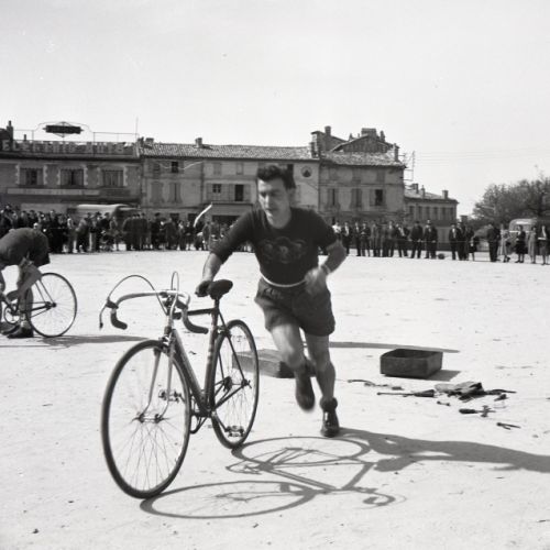 Combat de boxe au théâtre d'Angoulême, course de vélo Bordeaux - Angoulême à l'occasion de la semaine commerciale, remise de la Ford Vedette à la gagnante de la semaine commerciale d'Angoulême, camion des établissements Reynaud, arrivée de la course de vélo La Rochelle - Angoulême.