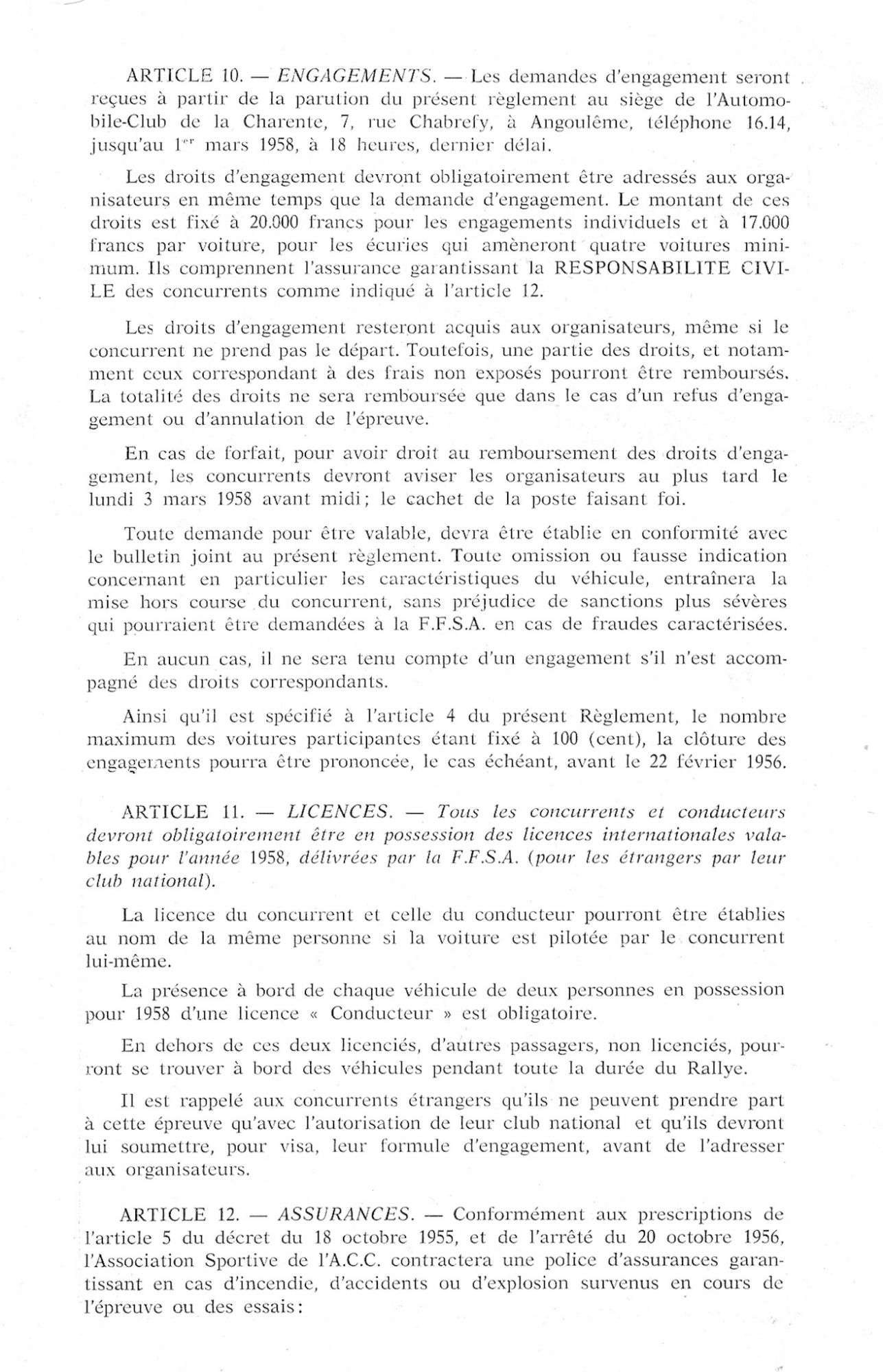 1er album de mars 1958 : il est exclusivement consacré au Rallye de la Charente et du Cognac.