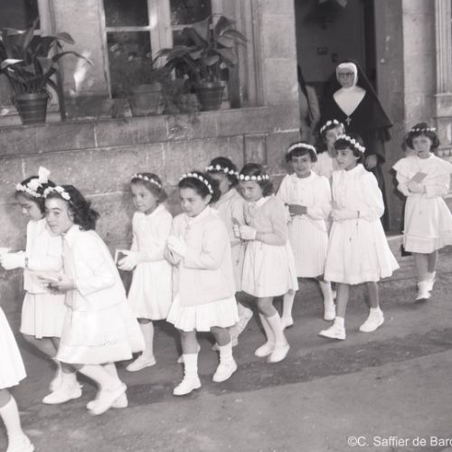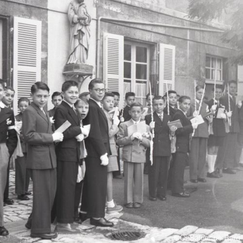 Le magasin "Tout à 100 francs " (n'oubliez pas, ce sont des anciens francs soit 100 f. = 1 nouveau franc en 1960), arrivée du prix de l'Epicerie, place du Champ de Mars, le couple gagnant de la semaine commerciale reçoit le premier prix la Ford Vedette, commémoration de la fête de la victoire au monument aux morts de la place de La Bussatte, Communion privée à l'école de l'Enfant Jésus en 1953 à Angoulême, M. Catala Directeur Général du journal "La Charente Libre", route du Gond, repas annuel du Syndicat des boulangers à l'Hôtel de France, régates sur la Charente à Lhoumeau, Communion à l'église Saint Martial, Communion à Saint-Michel, arrivée de communiants à la cathédrale Saint Pierre, l'explorateur Paul-Emile Victor en pleine séance de dédicace, banquet de la Foire exposition, banquet de la Foire exposition d'Angoulême, fête de la paroisse du Sacré-Coeur, kermesse à l'école Saint- André.
