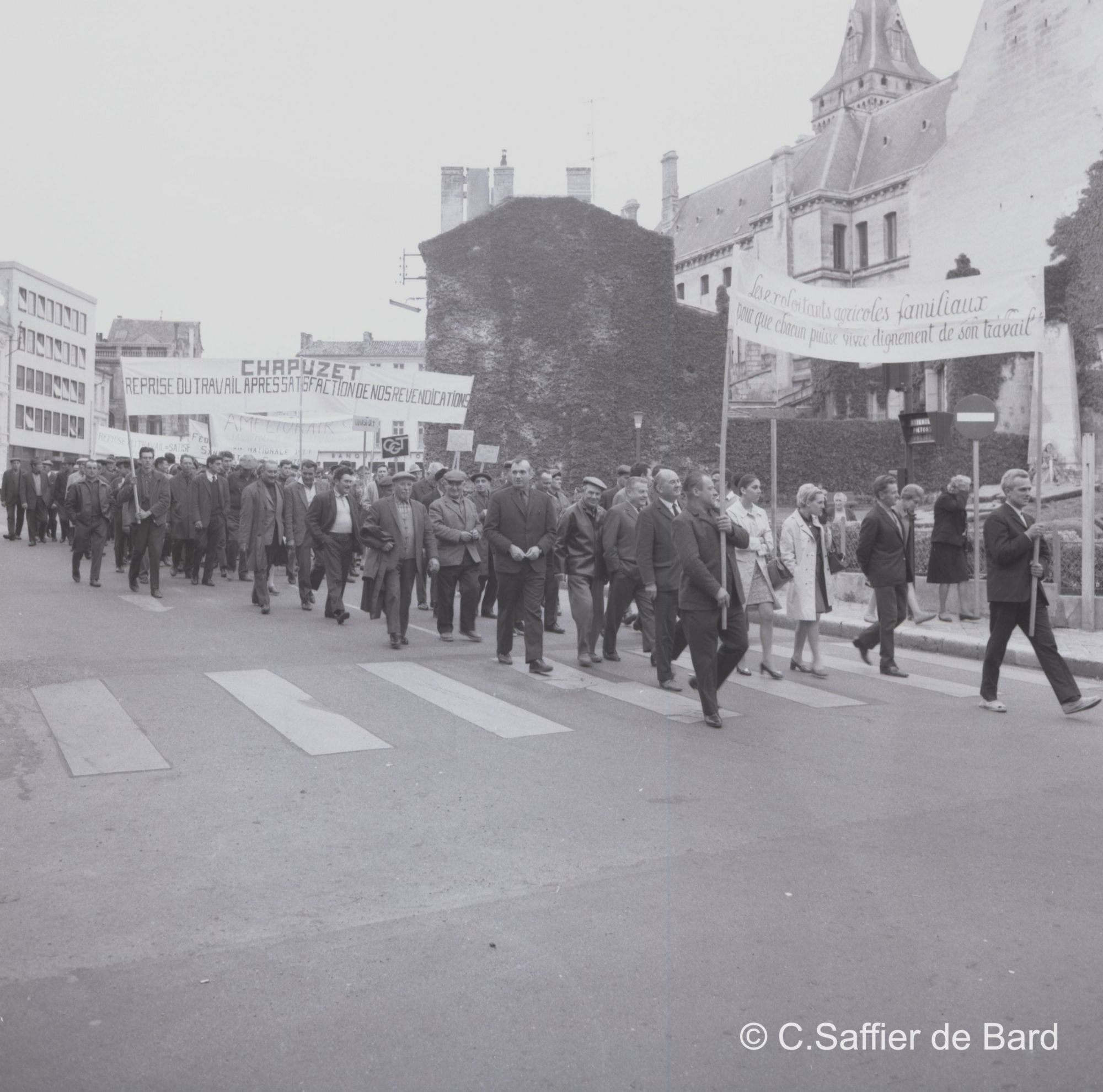 1er album photos de mai 1968 : 1er album du mois de mai 1968 : manifestation à Angoulême, camion dépannage EDF, les immeuble de La Grand Font, Motocross et Sidecar Cross au circuit des Séverine à La Couronne, immeubles de la Grand Font, soirée ratée au night-club du Drugstore, nouvelle salle omnisport Raymond Denost de La Grand Font, entraînement des pompiers sur un simulacre d’accident à Puymoyen, remise de décorations au commissariat d’Angoulême, sortie de l’usine Moreau à Angoulême, quelques stands de la Foire Exposition d’Angoulême qui se déroule à Bourgines, présentation du drapeau à La Braconne, Fête des Mères au Nouvelles Galeries, accident route de Vars, Animation de la radio Europe 1 aux Meubles Lévitan,, présentation du drapeau à la Braconne, les ateliers municipaux rue Jules Ferry, réception à l’Hôtel de Ville d’Angoulême visite du Château de Lignères des escrimeurs soviétiques.