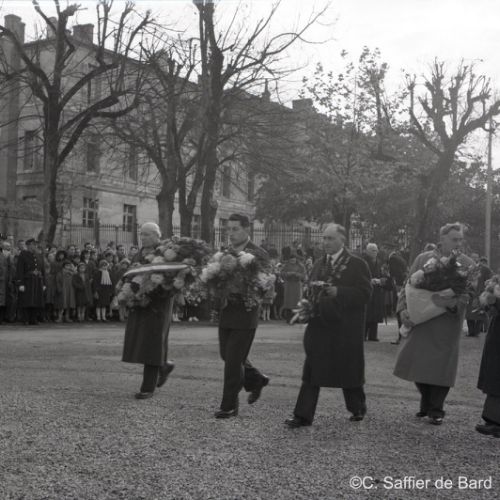 Congrès des instituteurs à la Maison du Peuple, commémorations du 11 novembre, ASAC reçoit l'équipe de Football de Marseille, le SCA reçoit l'équipe de rugby de Toulouse en challenge Yves du Manoir, tableau de Monsieur Humblot, l'église octogonale de Saint Michel en 1957, le chef de gare d'Angoulême, le SCA recoit l'équipe de rugby de Pau, mach de football Saint Cybard-Barbezieux,vues de la chapelle, le commandant qui dirige la partie francaise et les logements du camp de La Braconne, banquet annuel 1957 de l'entreprise Robin, l'ASAC reçoit l'équipe de football de Limoges, repas des anciens de Sillac. incendie rue Trousset.