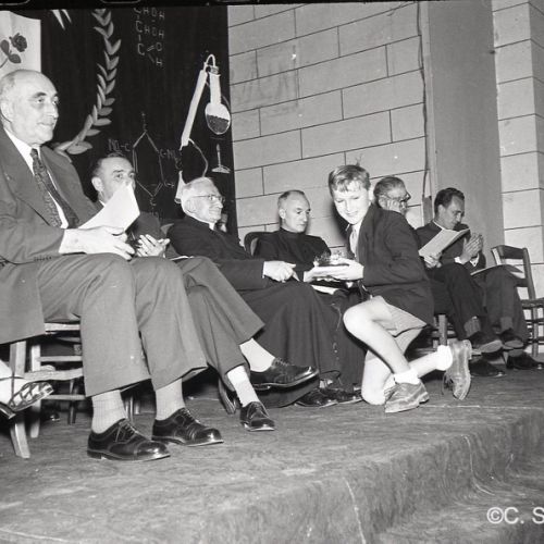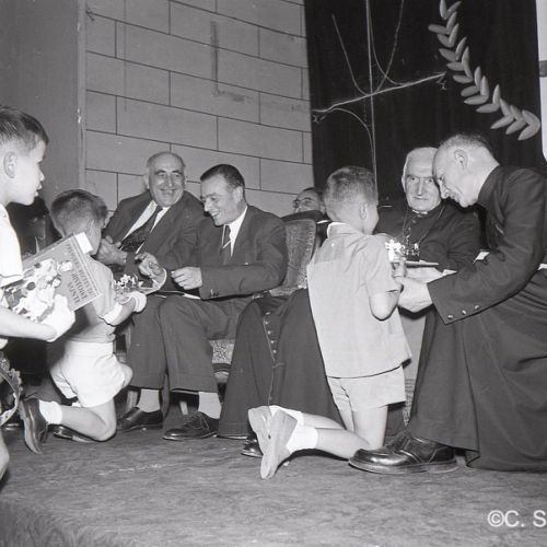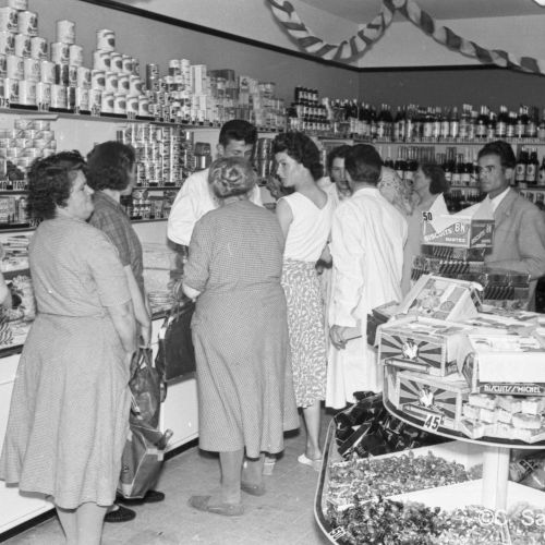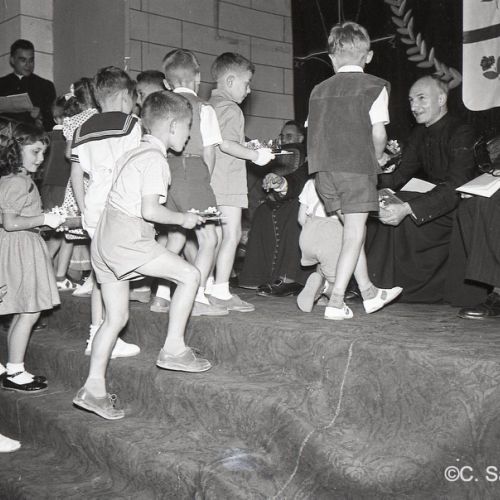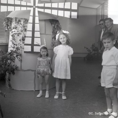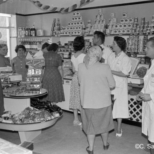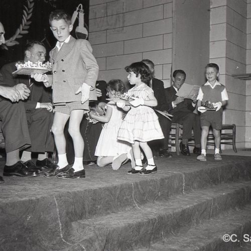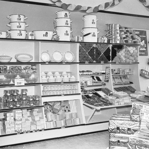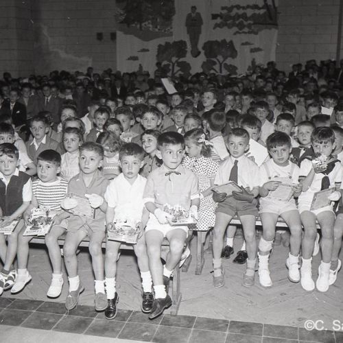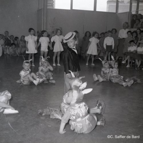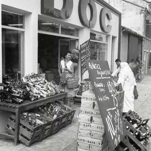 6ème album de juin 1956 : Fête costumée à l'école maternelle du Gond-Pontouvre, représentation de l'UFOLEP au théâtre d'Angoulême, la place Francis Louvel un matin de juin, travaux rampe du Jardin Vert, Dstribution des prix de fin d'année scolaire à l'école Saint Paul d'Angoulême, ouverture du magasin DOC à Soyaux, notez les prix des produits en anciens frans d'avant 1960 (250 fr. = 2,5 fr. de nouveaux francs).