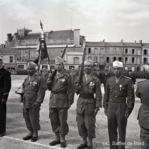 Défilés, photos de groupe, activités diverses des militaires français.