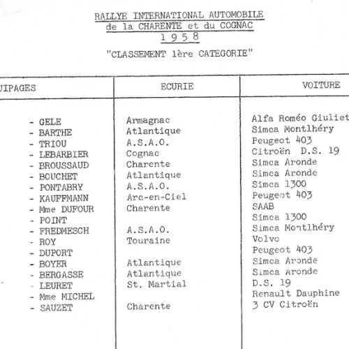 Rallye international de Charente et du Cognac 1956 et 1958