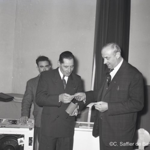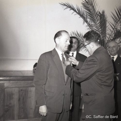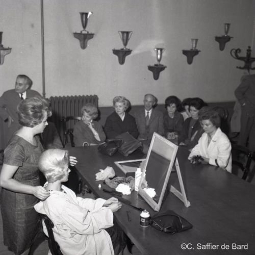 Prise en charge d'un blessé au Jardin Vert, remise de la Légion d'honneur au Docteur Mathé, directeur de l'Höpital Pssychiatique d Breuty ajourd'hui Camille Claudel, démonstration au salon de coiffure Mathieu situé rue de Périgueux entre la place du Champ de Mars et la place de La Bussatte à Angoulême , revue des troupes par le Général de Subdivision à Angoulême, exercice incendie et repas au camp américain de La Braconne, les établissements Sabas à Angoulême reçoivent leurs clients et leur présentation de la nouvelle gamme Frigidaire, partie de pétanque rue des Boissières, don du sang, vitrine du magasin Baney rue de Périgueux à Angoulême, photo couleur de la vitrine du magasin Sabas, démonstration de labour à l'école de l'Oisellerie de La Couronne, l'usine Maintenon aux Chaumes de Crage à Angoulême.