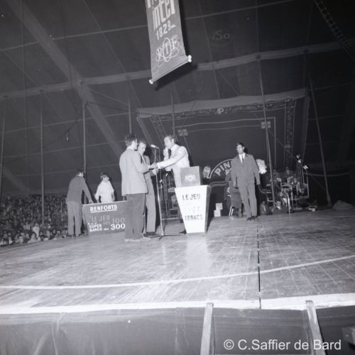 Sauf erreur de ma part, 2e en partant de la gauche, Jacky Dussidour, puis Jacky Timmonier, devant avec les lunettes Bernard Dallet, masqué derrière lui mais je reconnais son petit bout de visage Dédé Robert, avec le coude posé sur la table Jean-Louis Mathieu, à sa droite Christian Mergnac et à l'extrême droite Jean-Claude Forest. Sur les 7 nommés, 5 nous ont quitté.