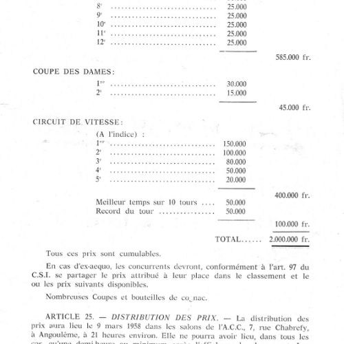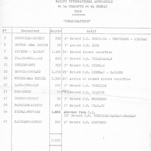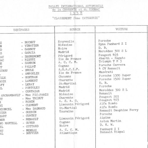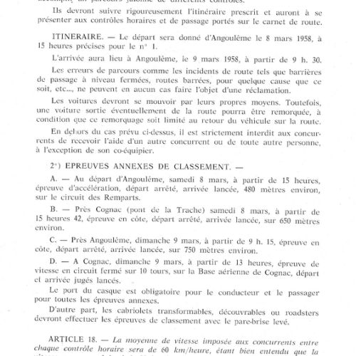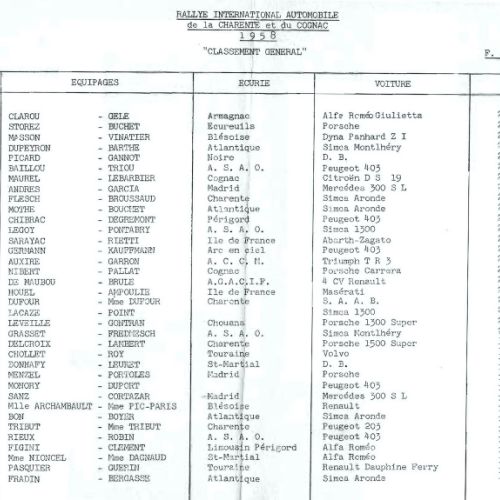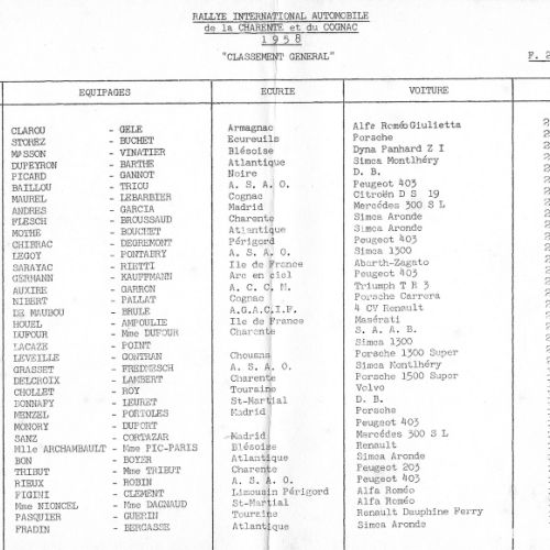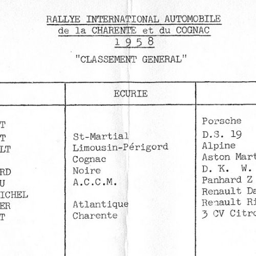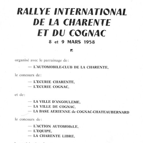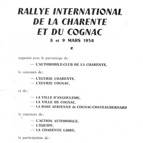 1er album de mars 1958 : il est exclusivement consacré au Rallye de la Charente et du Cognac.