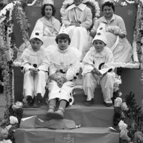 Auto-Ecole militaire Ravard Quartier Bossu, construction de l'Ecole du Gond, défilé de mode Arlène à l'Hôtel de France, inauguration du Café de La Paix, plus de 80 enfants participent à l'après-midi costumée de l'école des Boissières.